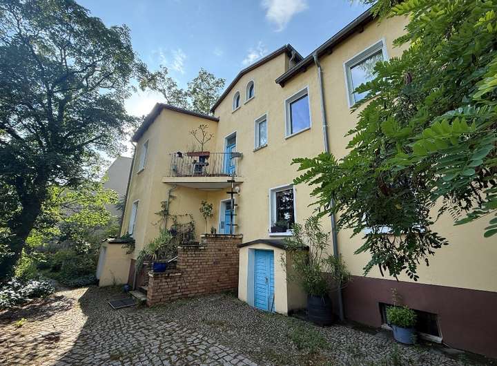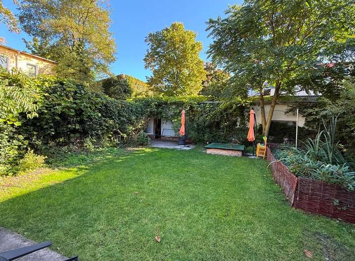 Zum Verkauf steht ein 1.692 m² großes Baugrundstück, welches zurzeit lediglich mit einem gepflegten Mehrfamilienhaus und Nebengebäuden bebaut ist. Das charaktervolle Haus besticht durch seine klassische Architektur, die liebevoll erhalten wurde.