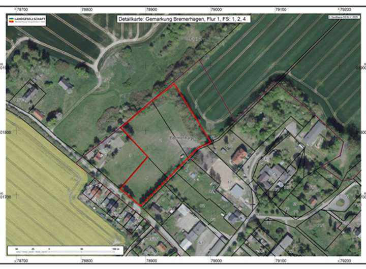 Das angebotene Grundstück befindet sich in Bremerhagen, einem ruhigen Ortsteil der Gemeinde Sundhagen im Landkreis Vorpommern-Rügen. Es handelt sich um ein Weitläufiges Grundstück in mitten einer vorhandenen Wohnbebauung. Die Fläche im Status „Ackerland“ wird derzeit zur Weidehaltung genutzt. Die Umgebung ist geprägt von weitläufigen Feldern und Wiesen. Ein angrenzender Wald sorgt für zusätzlichen Erholungswert. Zum Verkauf stehen die Flurstücke Nr. 4 und Nr. 2 sowie eine unvermessene Teilfläche des Flurstücks Nr.1. Der Erwerber beauftragt die Vermessung. Das Land ist von sämtlichen Kosten freizuhalten.