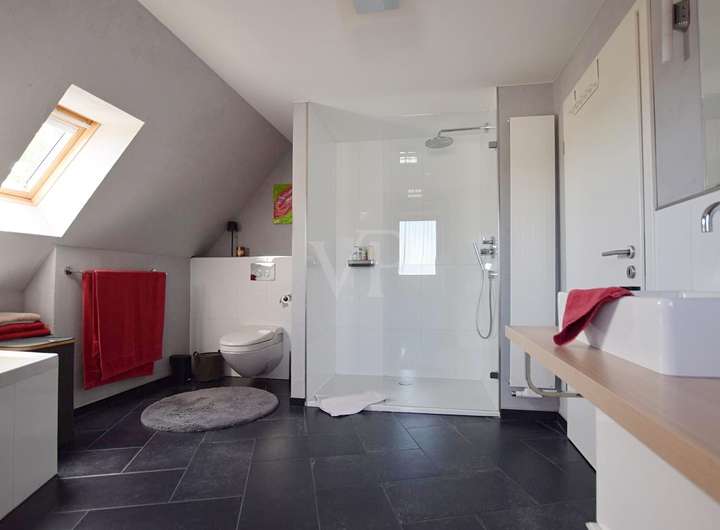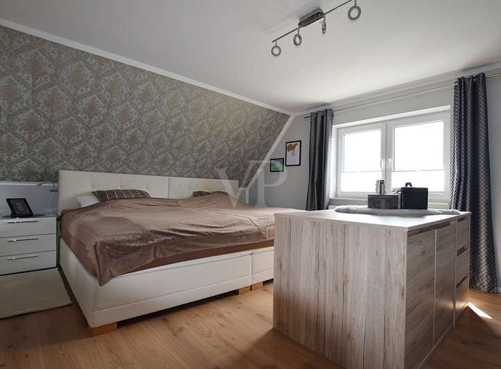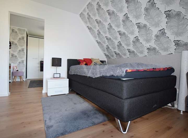 Im Dachgeschoss und dem voll ausgebauten Spitzboden entfaltet sich der Rückzugsbereich: gemütlich, privat und voller Ruhe. Hier lässt sich der Tag ausklingen, die Gedanken ordnen und neue Kraft schöpfen. Die Räume bieten vielseitige Möglichkeiten – sei es als Schlafzimmer, Arbeitszimmer oder kreativer Freiraum.