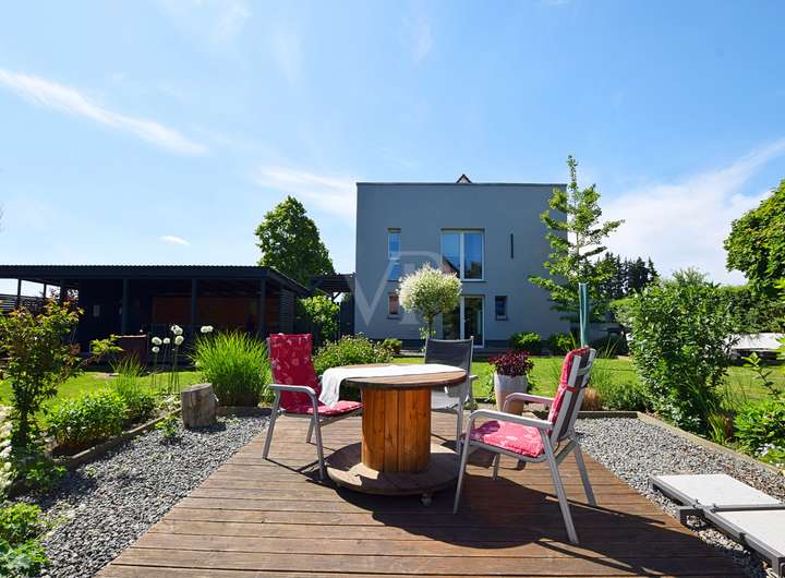 MODERNE DOPPELHAUSHÄLFTE MIT DACHTERRASSE, GARAGE UND GROßEM GARTEN