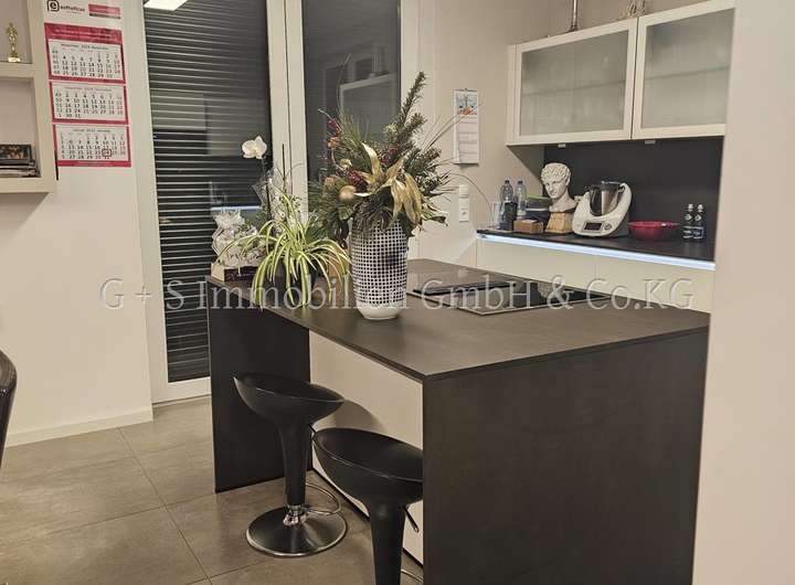 Angrenzend an das Wohn-Esszimmer befindet sich die exklusive Küche. Ausgestattet mit hochwertigen Einbauten und Elektrogeräten wird das Kochen zum Vergnügen.