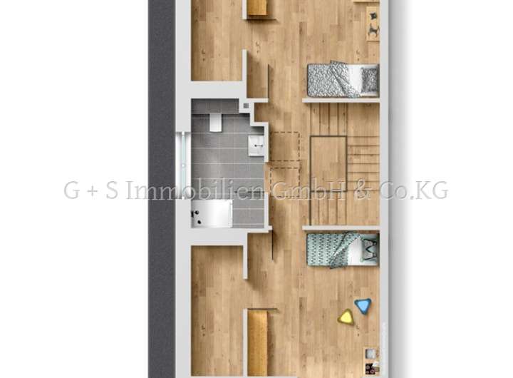 Über das Treppenhaus erreicht man das ausgebaute Dachgeschoss.