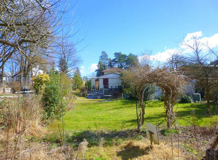 Das Grundstück besteht aus zwei Flurstücken und hat optimale Maße für einen Neubau in erster Reihe mit einem dahinterliegenden großen Garten, der einen schönen Blick in das unbebaubare Landschaftsschutzgebiet mit dem Kindelfließ ermöglicht. Das schmale rechts liegende Flurstück und der vordere Teil des großen Flurstücks liegen auf Straßenniveau, der hintere Teil liegt etwas niedriger. Auf dem Grundstück befinden sich ein älterer wohnlicher teilunterkellerter Bungalow mit schöner Terrasse, ein Nebengebäude als Wirtschaftshaus und ein Gewächshaus. So kann man diese Immobilie als einen Ort der Erholung nutzen oder eine Zeit der Ruhe genießen, bevor es in die Bauphase geht, um sich ein wunderschönes neues Heim zu schaffen.