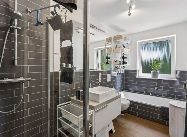 - 2 Vollbäder mit Fenster im 1. OG und DG und 1 GWC im EG