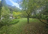 2.232m² Grundstück mit kleinem Wald und einer urigen Hütte, einem Bachlauf mit einer hölzernen Brücke und einer großen Grünfläche mit schönem Baumbestand vor dem Wohngebäude und all das in bester Südausrichtung. Auf der anderen Straßenseite befindet sich eine großflächige Wiese mit grasenden Kühen als Nachbarn, die den Blick in den Horizont freigibt und der Wohnlage einen naturnahen Charakter verleiht.