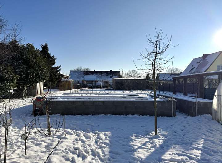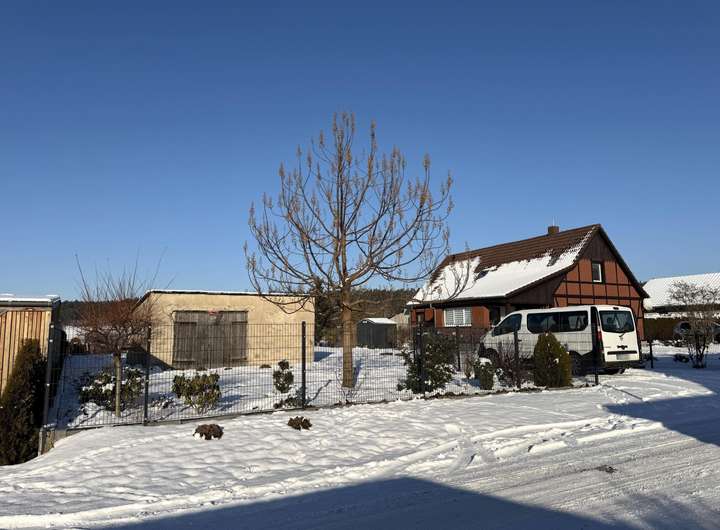 Laut Klarstellungssatzung der Gemeinde befindet sich der vordere Teil des Grundstückes im Innenbereich und kann nach §34 BauGB (Umgebungsbebauung) bebaut werden. Um die Errichtung eines Wohnhauses zu ermöglichen, muss die vorhandene Garage abgerissen werden. Die Hochbeete und Gewächshäuser werden von der Eigentümerin vollständig entfernt.