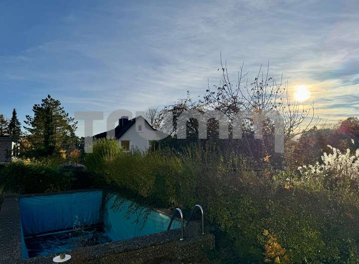 Derzeit ist das Grundstück mit einem unterkellerten Altbestand mit Garage und Außenpool bebaut. Der Außenpool ist lt. Angabe des Verkäufers mit Folie in das Erdreich eingelassen, was die Abbruchkosten erheblich reduziert. Der Bestand ist im Kaufpreis nicht eingepreist und zum Abriss bestimmt. Die Kosten hierfür trägt der Käufer.