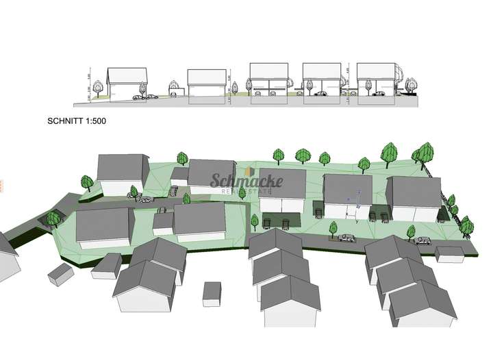 Zurzeit liegt ein Vorbescheid für ein Bauvorhaben mit 6 Doppelhaushälften und 4 Einfamilienhäusern vor. Dieses Bauvorhaben ist auf den Bildern im Exposé veranschaulicht.