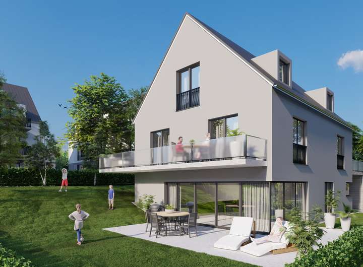 In unmittelbarer Umgebung werden zwei moderne Mehrfamilienhäuser realisiert, was die Attraktivität und Entwicklungsperspektive des Standortes weiter unterstreicht.