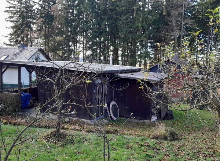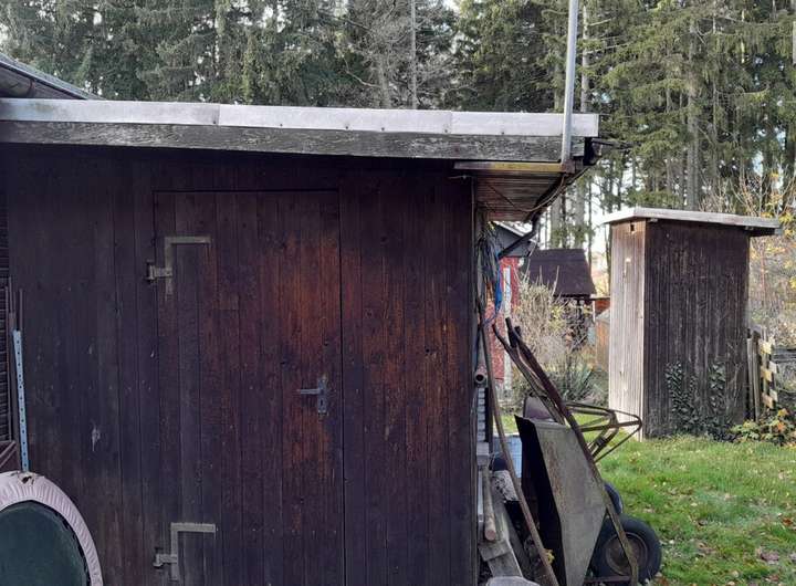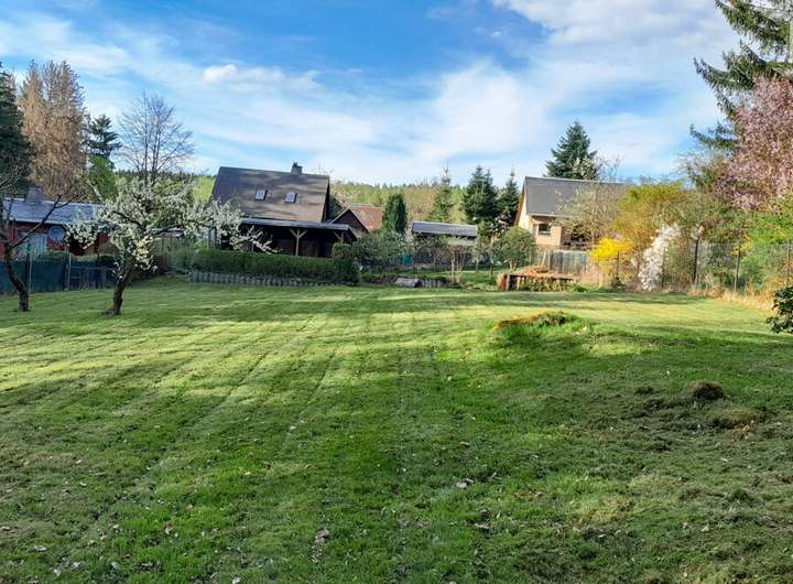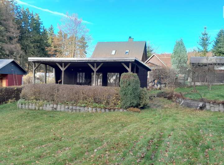 Das Grundstück befindet sich am Rande der Gartensiedlung am Hirschfels direkt am Wald. Parkplätze gibt es ca. 500 m entfernt an der Raschauer Straße.