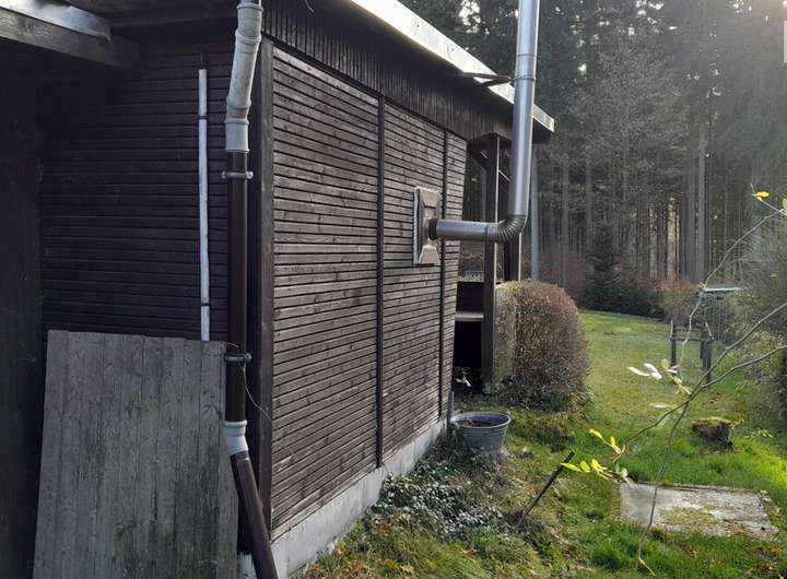 Beheizt wird der Bungalow durch einen Einzelofen.