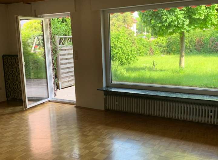 Vom Wohnzimmer gelangen Sie auf die Terrasse und in den herrlichen Garten.