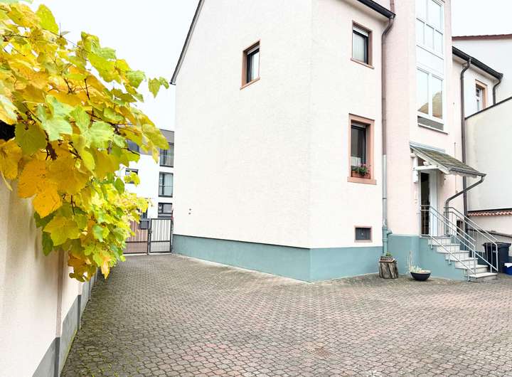++ Langer, Gepflasterter Innenhof mit flexiblen Stellplatzmöglichkeiten