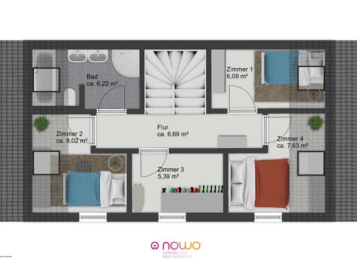 Bitte beachten Sie, dass es sich in den Grundrissen um Möblierungsvorschläge handelt. Die evtl. tatsächlich in der Immobilie befindliche Möblierung ist, sofern nicht anders erwähnt, nicht Bestandteil des Kaufangebotes.