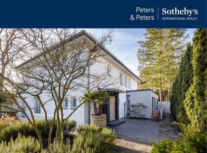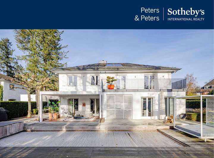 Inmitten exklusiver Nachbarschaft finden Sie diese einzigartige Villa aus dem Jahr 1954, die 2006 kernsaniert und erweitert wurde. Große Fensterflächen und geradlinige Proportionen verleihen dem Haus eine moderne Architektur und eine schnörkellose Anmut. Die Wohnflächen gehen fließend ineinander über und schaffen eine nahtlose Verbindung zur Terrasse und zum Garten.