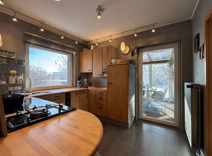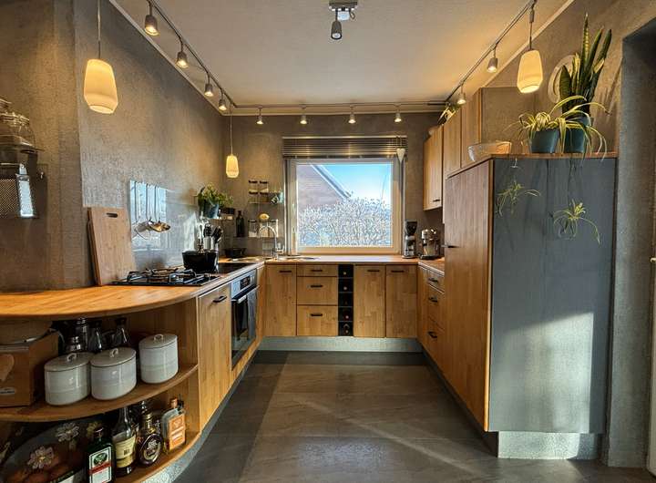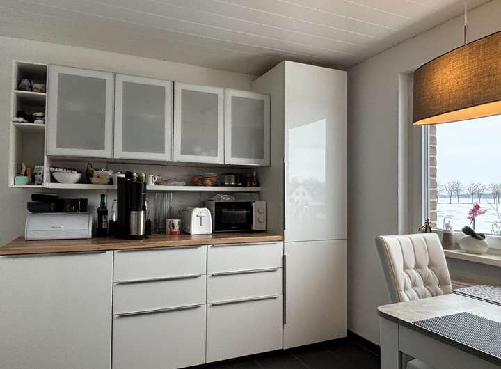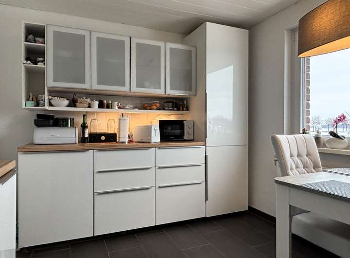 • Küche (EG) mit Einbauküche, großem Cerankochfeld, zusätzlichem Gaskochfeld und Geschirrspüler