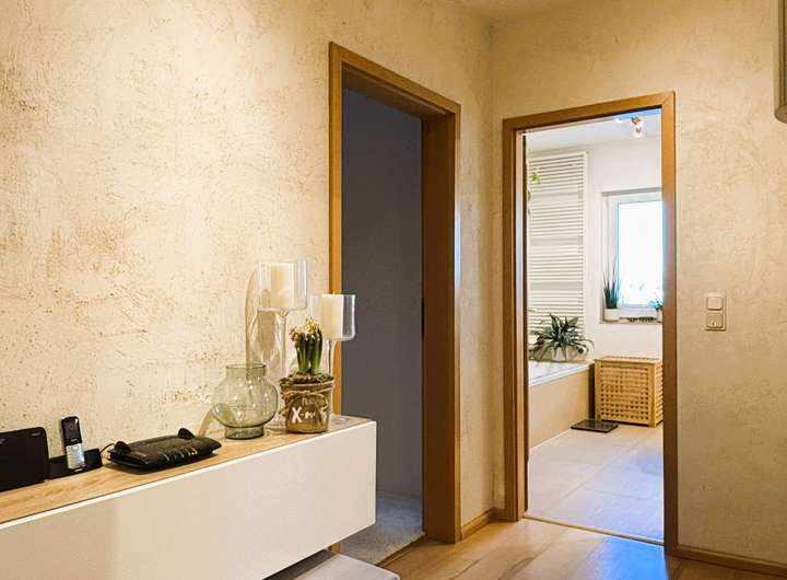 • Wandgestaltung mit wertigem Marmorputz (CARASTON), MICA-Gold / MICA-Glas