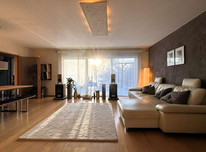 • Wohnzimmer mit hochwertiger Buchen-Landhausdiele