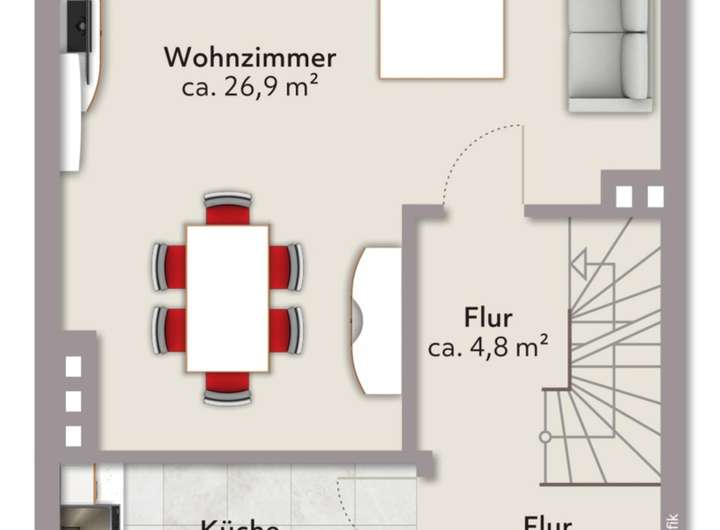 Durch den klassischen Grundriss wurde jeder Quadratmeter genutzt und wartet darauf nach Ihren Vorstellungen gestaltet zu werden! Das Erdgeschoss eignet sich durch die Küche und das Wohn-/Esszimmer, mit Blick auf die Terrasse, für gemeinschaftliche Momente. Im Ober- und Dachgeschoss kommt jeder auf seine Kosten, da es genug Rückzugsorte gibt. Vor allem der großzügig ausgebaute Dachboden bietet viel Platz, um sich zu verwirklichen.