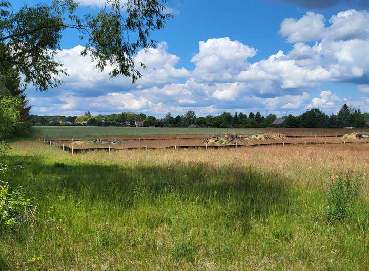 alle Grundstücke sind mit den notwendigen Medien erschlossen. Die Grundstücke liegen alle am Feldrand mit freiem Blick in Richtung Süd, Süd-west, damit sonnige Lage. Die Grundstücke sind eben, ohne Bebauung und ohne Bäume. Bei den Grundstücken drei bis sechs liegt ein ausgebauter kleiner Parkplatz vor den Grundstücken damit auch gute Parkmöglichkeiten. Die Grundstücke haben in die Grundstückmitte verlegte Baufenster, so dass wir einen guten Abstand zur befestigten Straße haben. Bebauungen im Rahmen des B-Plan mit Bungalow oder klassischem Einfamilienhaus. Die GRZ beträgt 0,4. Alle Grundstücke haben befestigte Zufahrten. Auf den Grundstücken zwei bis zehn ist im Übergang zur Grundstücksgrenze ein fünf Meter breiter Grüngürtel angelegt worden. Davor befindet sich ein Biotop für umgesiedelte Zauneidechsen! Dieses können Sie in Ihre Gartenplanung einbeziehen und mitgestalten. Weiteres in einem persönlichen Gespräch.