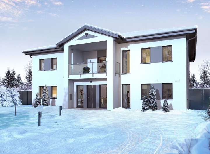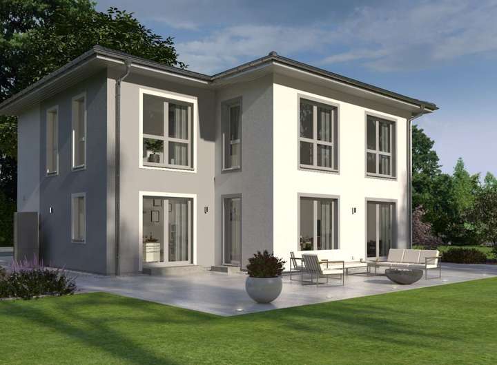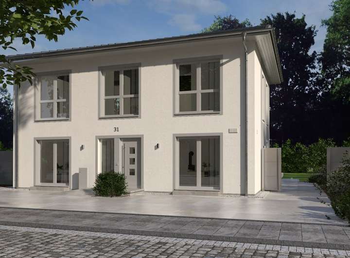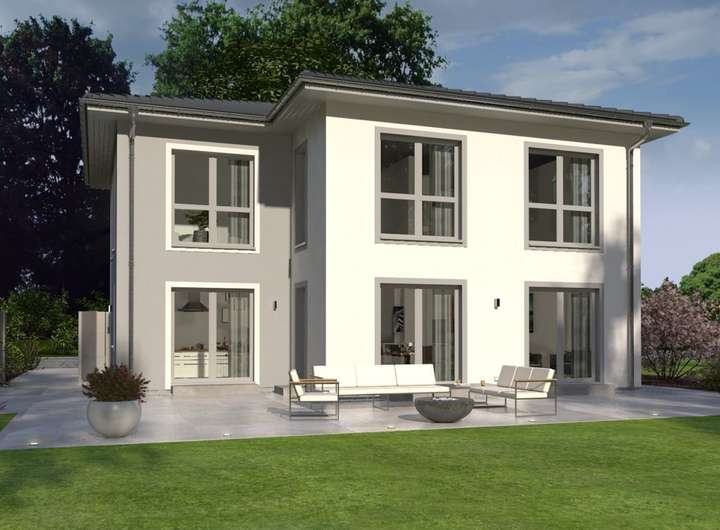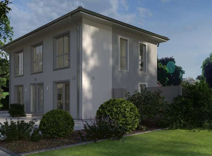 Mit ihrer klaren Linien- und Formgebung wirkt die Stadtvilla 23 puristisch-modern und fügt sich so problemlos in jede Wohnumgebung ein. Durch die besondere Fassadengestaltung ist sie en vogue und zeitlos gleichermaßen und besticht durch die großzügig verbauten, bodentiefen Fenster, die für lichtdurchflutete Räume und für ein Gefühl von Freiheit sorgen. Im Erdgeschoss sind die Übergänge von Diele, Küche und dem großen Wohn-Ess-Bereich fließend. Lediglich Gästezimmer/Büro sowie Bad und Hauswirtschaftsraum sind räumlich vom Rest abgetrennt. In der oberen Etage führt die mehr als 11 Quadratmeter große Galerie in die drei Kinderzimmer, zu denen auch ein eigenes Bad gehört, sowie in den Elternbereich. Hier befinden sich neben einem Schlafraum noch ein Ankleidezimmer sowie ein Bad mit Wanne und Dusche. Auf einer Fläche von mehr als 200 m² werden in dieser Stadtvilla Wohnträume wahr. Durch die Vielzahl an Räumen sind viele Gestaltungsmöglichkeiten denkbar. Der Fantasie sind keine Grenzen gesetzt.