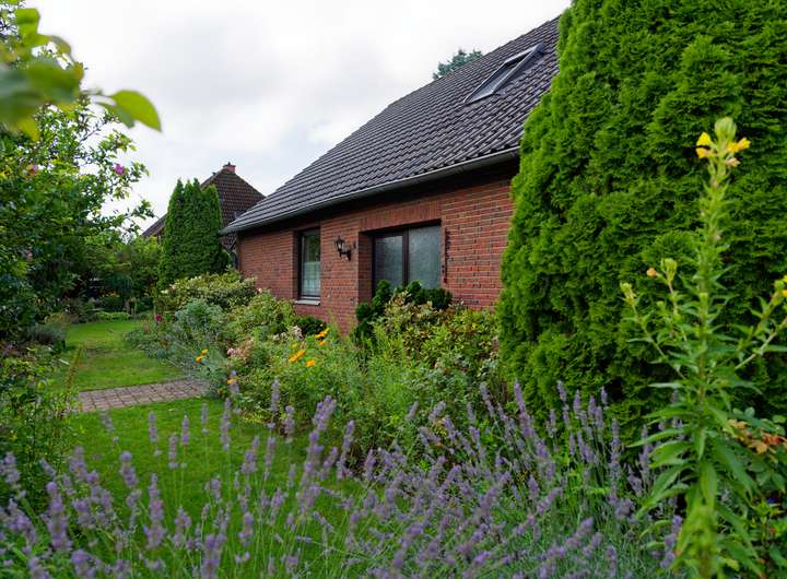 Das Haus befindet sich auf einem ca. 632 m² großen Grundstück in Veltenhof.
