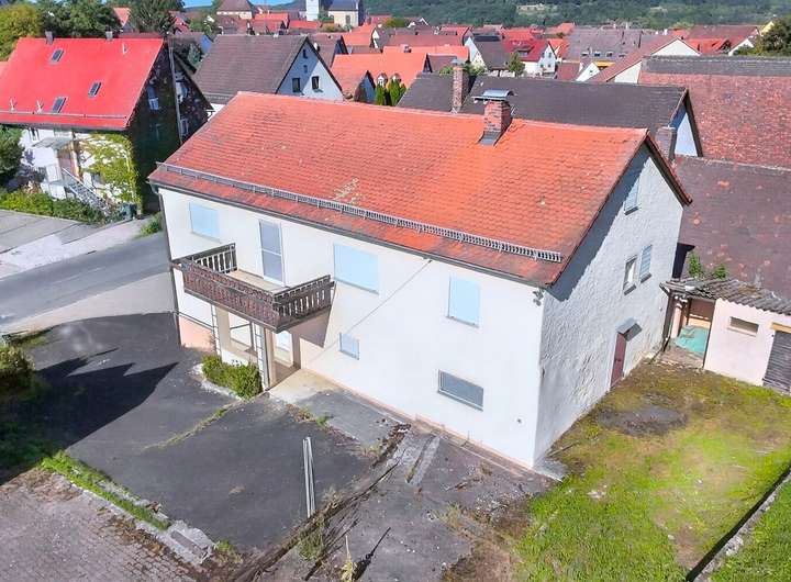 Das Grundstück mit Altbestand befindet sich in Kirchehrenbach, einer charmanten Gemeinde im oberfränkischen Landkreis Forchheim. Umgeben von der reizvollen Landschaft der Fränkischen Schweiz bietet der Ort eine naturnahe und gleichzeitig verkehrsgünstige Lage. Kirchehrenbach liegt am Fuße des Ehrenbürg, auch bekannt als Walberla, einem beliebten Ausflugsziel der Region. Der Ort verfügt über eine gute Grundversorgung mit Einkaufsmöglichkeiten, Kindergarten, Schule und ärztlicher Betreuung. Ein eigener Bahnhof ermöglicht eine bequeme Anbindung an Forchheim und Ebermannstadt, während die Nähe zur Bundesstraße und zur Autobahn eine zügige Erreichbarkeit weiter entfernter Ziele gewährleistet. Die Kombination aus ruhigem Wohnumfeld, guter Infrastruktur und landschaftlicher Attraktivität macht Kirchehrenbach zu einem gefragten Wohnort für Familien, Pendler und Naturliebhaber.