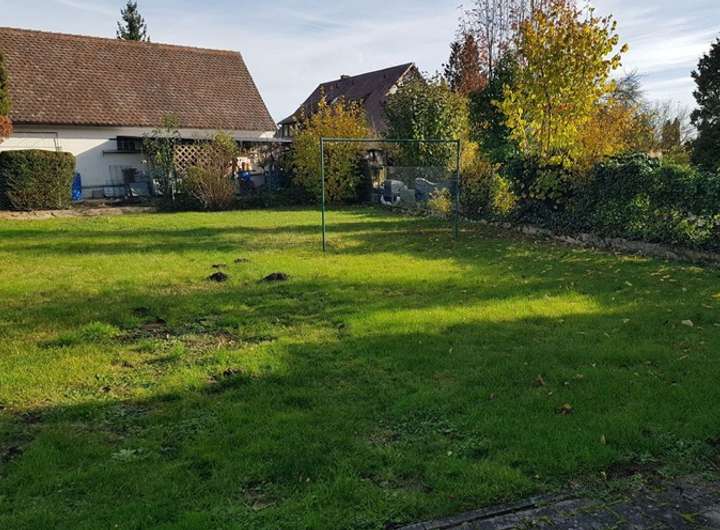 Das Grundstück ist aktuell noch mit einem Haus als Abrissobjekt (sowie mit einem Garagengebäude ebenfalls als Abrisspbjekt) bebaut.
