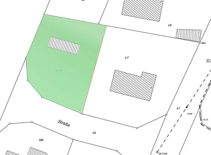 Das Grundstück ist erschlossen, jedoch liegen einige Anschlusspunkte nicht direkt an der Grundstücksgrenze.