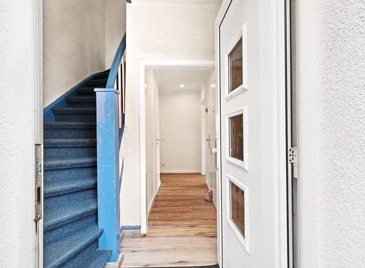 Die Immobilie liegt im beliebten Hamburger Stadtteil Rahlstedt, Bezirk Wandsbek. Rahlstedt vereint dörflichen Charme mit städtischer Infrastruktur und gilt mit seinen Grünflächen, Parks und Naturschutzgebieten als einer der familienfreundlichsten Stadtteile Hamburgs. Die Wohnstraße ist als Tempo-30-Zone mit den beiderseitigen Gehwegen angenehm ruhig. Hier genießen Sie eine entspannte Wohnatmosphäre mit guter Nachbarschaft, ohne auf die Nähe zum urbanen Leben verzichten zu müssen.