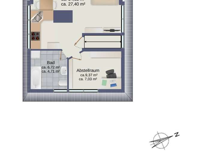 Zur Wahrung der Privatsphäre der Mieter zeigen wir keine Fotos der Dachgeschosswohnung.