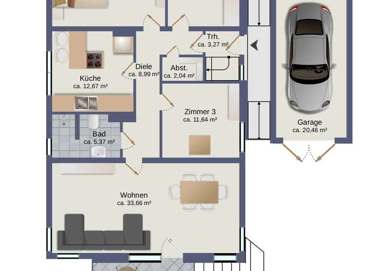 + 3 Zimmer und ca. 70 m² Wohnfläche