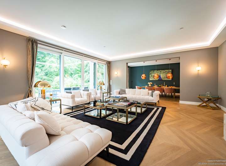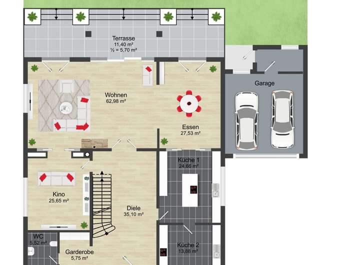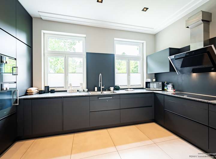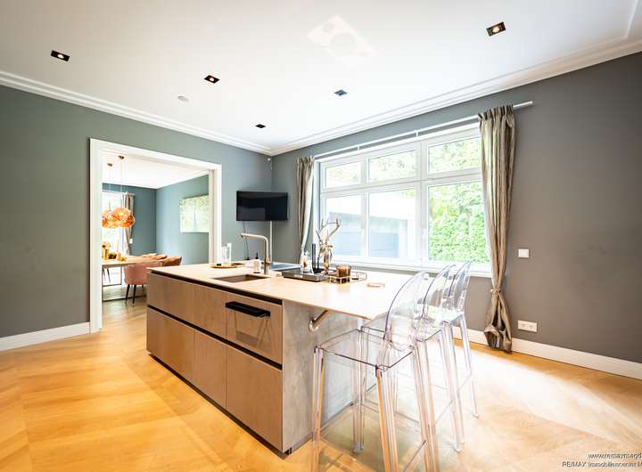 Schon das Entrée beeindruckt mit einer großzügigen Diele, Garderobe und Gäste-WC. Der lichtdurchflutete Wohn- und Essbereich mit Kamin bildet das Herzstück des Hauses – ein Ort für Alltag und repräsentative Momente. Zwei voll ausgestattete Designerküchen bieten maximale Flexibilität, sei es für Familienleben oder anspruchsvolle Gastlichkeit. Ein separates Heimkino schafft exklusive Unterhaltung in privater Atmosphäre.