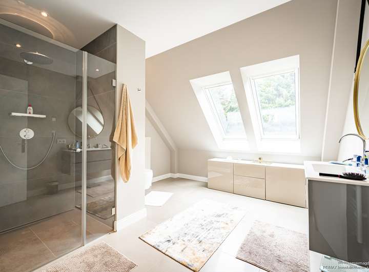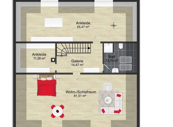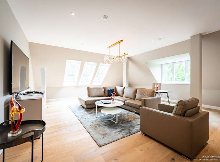 Das Dachgeschoss bildet den krönenden Abschluss: Eine weitläufige Galerie, ein großzügiger Wohn- und Schlafbereich, ein stilvoller Ankleideraum sowie ein modernes Tageslichtbad schaffen einen idealen Rückzugsort. Perfekt geeignet als private Suite, Gästebereich oder Atelier.