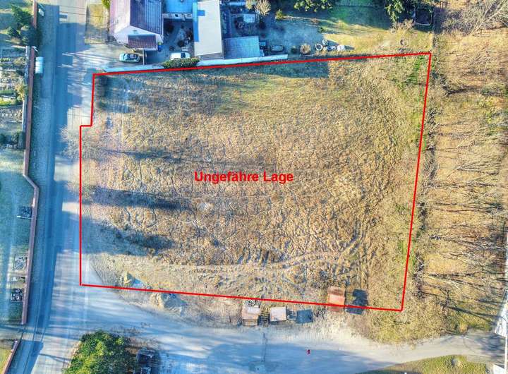 Rote Linien in Bildern dienen ausschließlich der Orientierung und sind nicht maßstabs- oder rechtsverbindlich. Sie stellen keine vollständige oder rechtsverbindliche Grenzangabe dar und ersetzen nicht die amtliche Flurkarte oder eine Vermessung durch das Katasteramt.