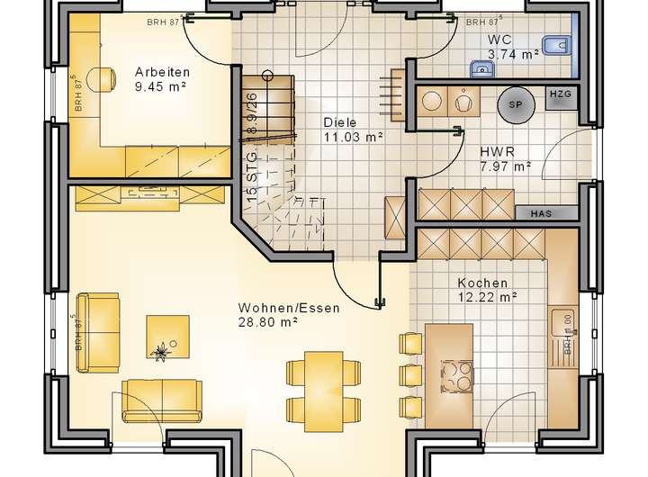 Nicht im Angebotspreis enthalten sind die Nebenkosten (Hausanschlüsse, Außenanlagen etc.)