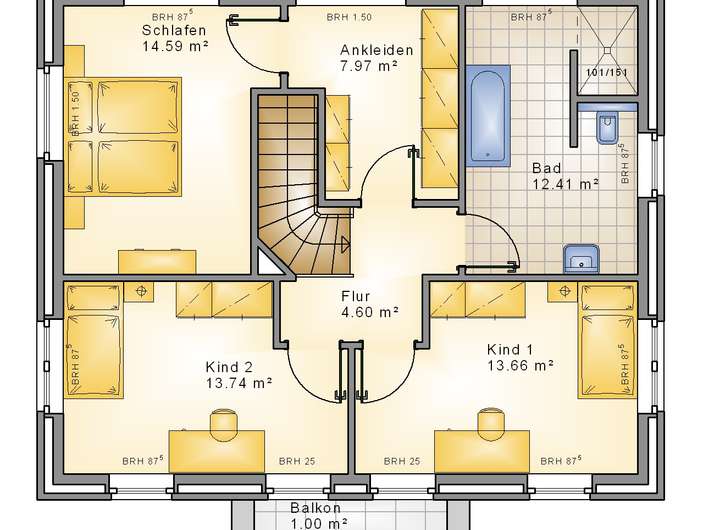 Bei allen weiteren Villentypen ist das erste Obergeschoss vollständig ohne Dachschrägen geplant, sodass die gesamte Grundfläche effizient genutzt werden kann. Auch auf Grundstücken mit der Vorgabe einer eingeschossigen Bauweise verwirklichen wir Villen, die vollständig auf Dachschrägen verzichten.