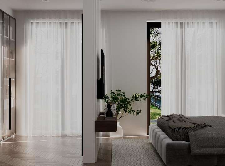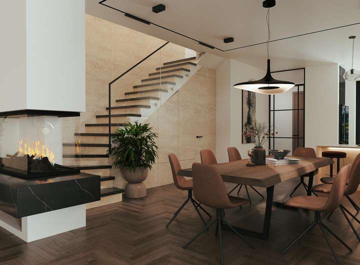 Helle, offen gestaltete Räume, große Fensterflächen und sorgfältig ausgewählte Materialien schaffen eine harmonische Verbindung aus Eleganz und Behaglichkeit.