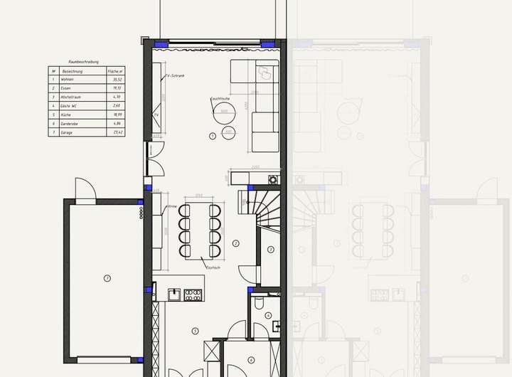 Die durchdachte Bauweise und der moderne Schnitt im Erdgeschoss ermöglichen die Integration einer eleganten Einbauküche - ideal für gesellige Kochabende oder ein entspanntes Frühstück mit Ausblick ins Grüne.