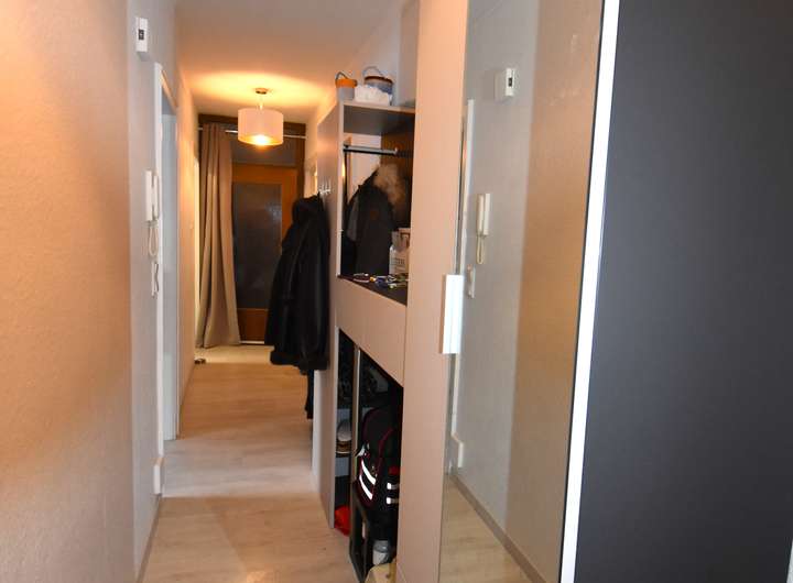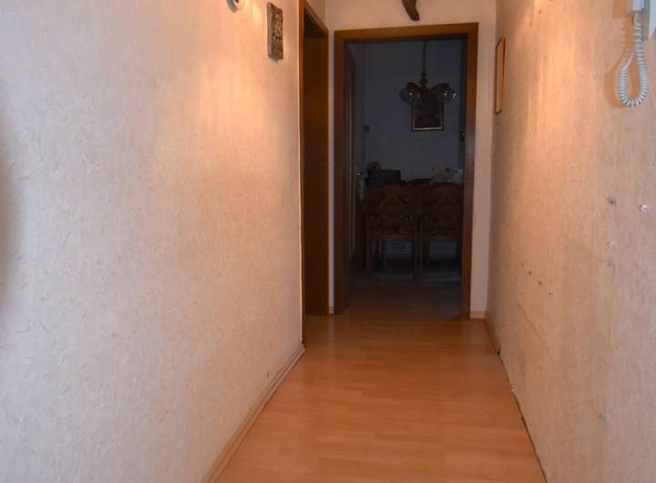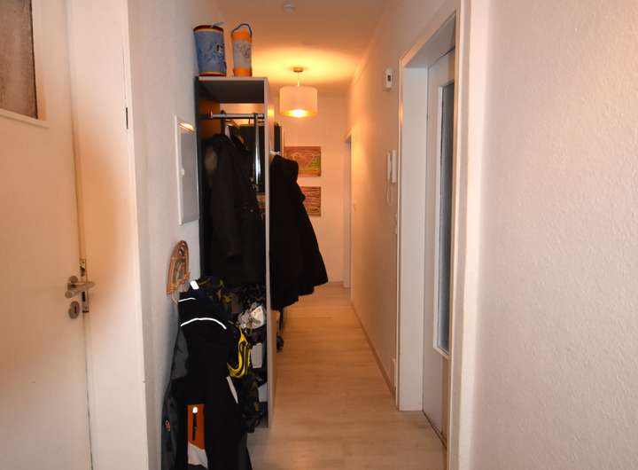 Laminatfußboden, Raufaser an den Wandflächen und an der Decke, offener Übergang zum Flur