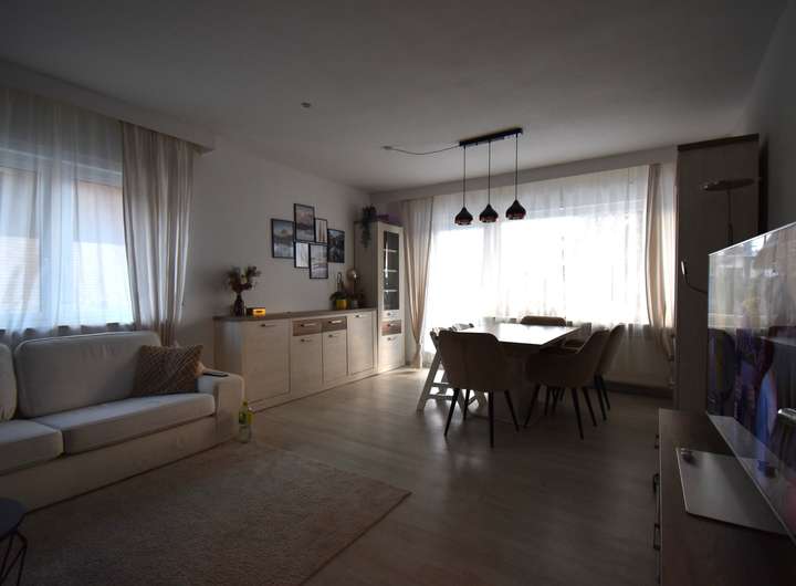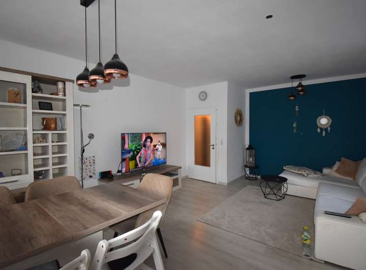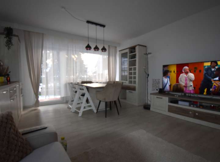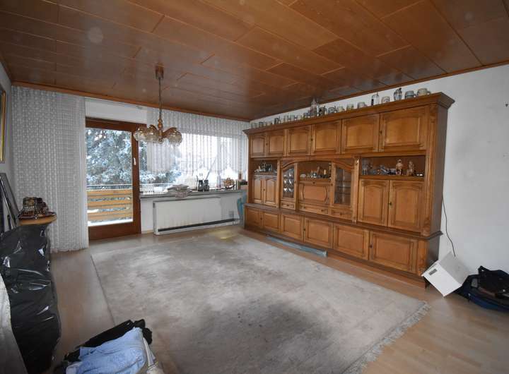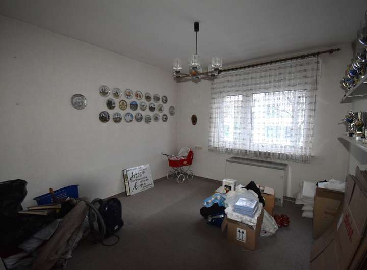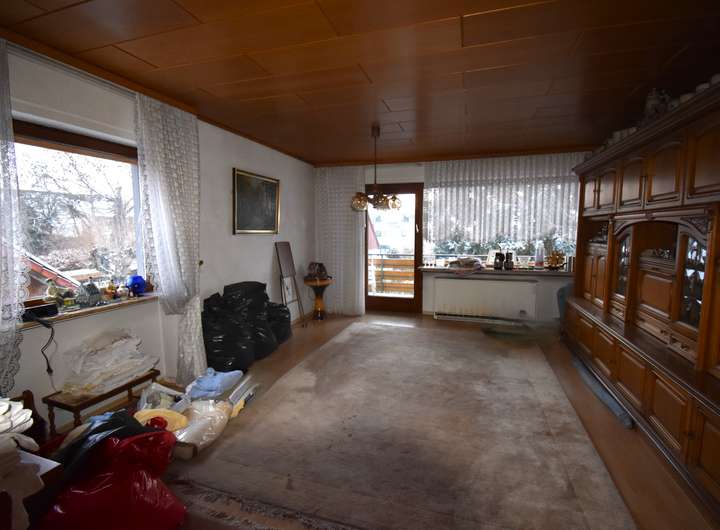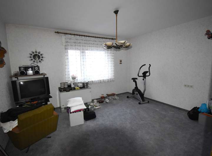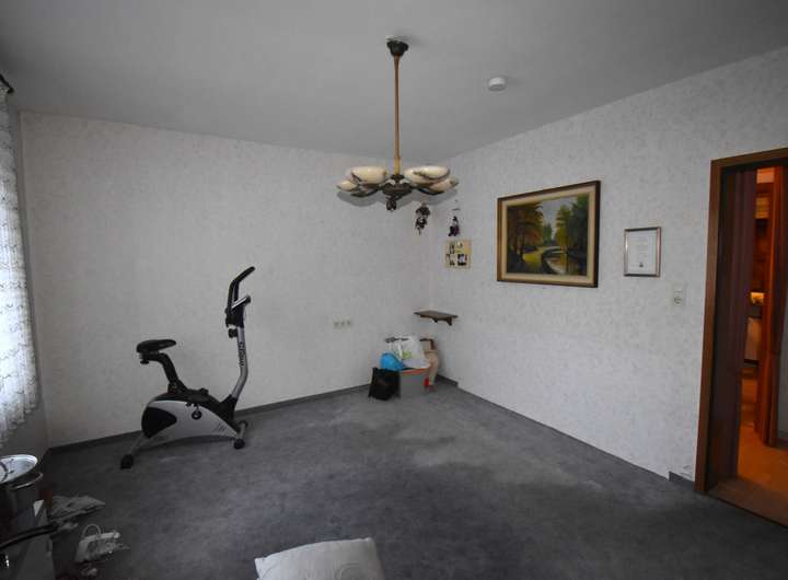 Laminatfußboden, Raufaser an den Wandflächen und an der Decke, TV-Anschluss, Zugang zur Terrasse und in den Garten