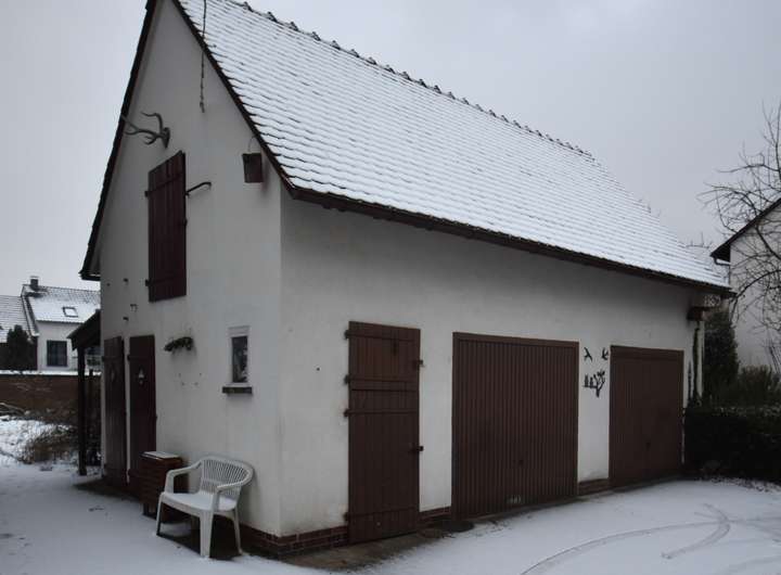 Auf dem Grundstück befindet sich zudem ein Nebengebäude mit zwei Garagen sowie weiteren Nutzungsmöglichkeiten. Direkt dahinter liegt ein überdachter Freisitz mit Grillplatz (ca. 25 m²), ideal für gesellige Stunden im Freien. Ergänzt wird das Stellplatzangebot durch eine weitere Einzelgarage neben dem Haus sowie zwei zusätzliche Pkw-Stellplätze im Hof, sodass ausreichend Parkmöglichkeiten auf dem eigenen Grundstück zur Verfügung stehen.