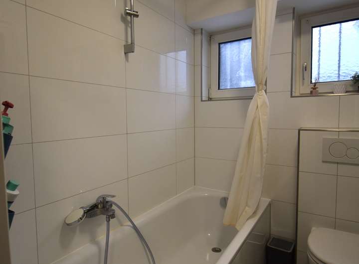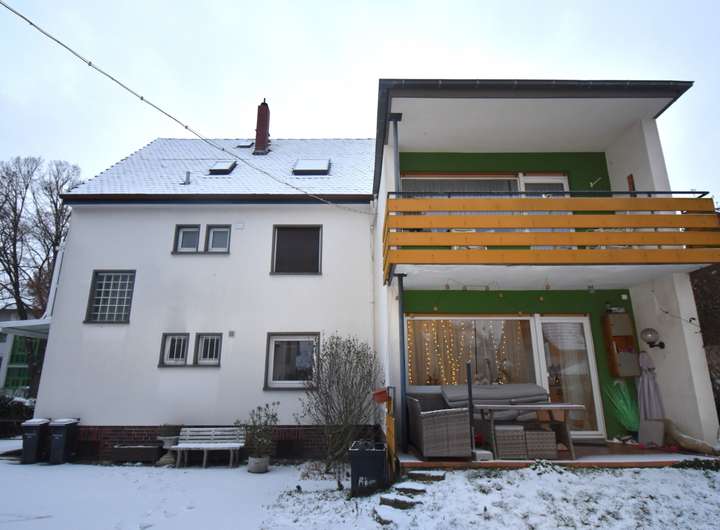 Die Erdgeschosswohnung umfasst vier Zimmer, eine Küche sowie ein Tageslichtbad mit Badewanne, welches ca. im Jahr 2021 modernisiert wurde. Vom Wohn- & Esszimmer aus gelangen Sie auf eine ca. 8 m² große Süd-West-Terrasse mit direktem Übergang in den ca. 100 m² großen Garten. Diese Wohnung ist seit Juni 2021 für derzeit 12.600 € p. a. netto vermietet, kann jedoch nach Absprache freigestellt werden.