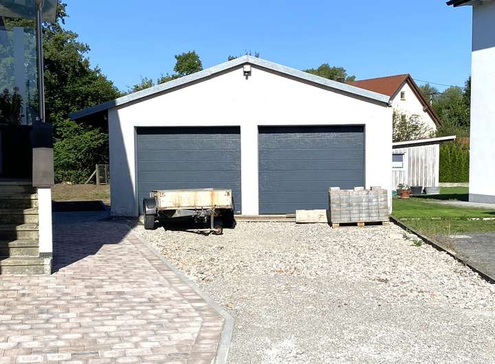 Auf dem Grundstück steht bereits eine gemauerte Doppelgarage.