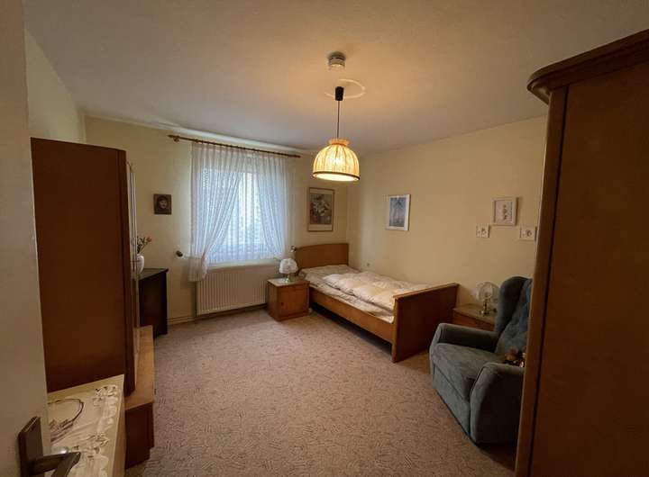 Das Haus erstreckt sich über zwei Etagen und verfügt über insgesamt vier Zimmer, die sich flexibel nutzen lassen. Im oberen Stockwerk befinden sich zwei gemütliche Schlafzimmer sowie ein zusätzliches Wohnzimmer. Der praktische Keller und der Dachboden bieten weiteren Stauraum und erweitern die Nutzungsmöglichkeiten des Hauses.