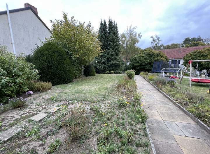 Ein besonderes Highlight ist der sonnige Garten, der direkt an das Haus angrenzt und genügend Platz für Freizeit, Spiel und Erholung bietet. Die separate Garage ergänzt das Angebot und sorgt für sicheren Stellplatz und unmittelbarer Nähe. Das Grundstück hat 2 Zugänge, von dem eine als Zufahrt für einen Stellplatz oder einer Garage direkt auf dem Grundstück hergestellt werden könnte.