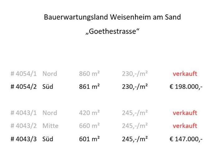 Die Grundstücksfläche befindet sich im Bereich des geplanten Neubaugebietes "Goethestrasse" in Weisenheim am Sand.