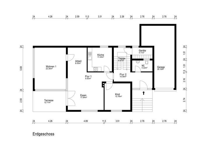 Die Wohnung im Erdgeschoss und Souterrain entspricht in ihrer Ausführung und Nutzung der genehmigten Bauplanung.
