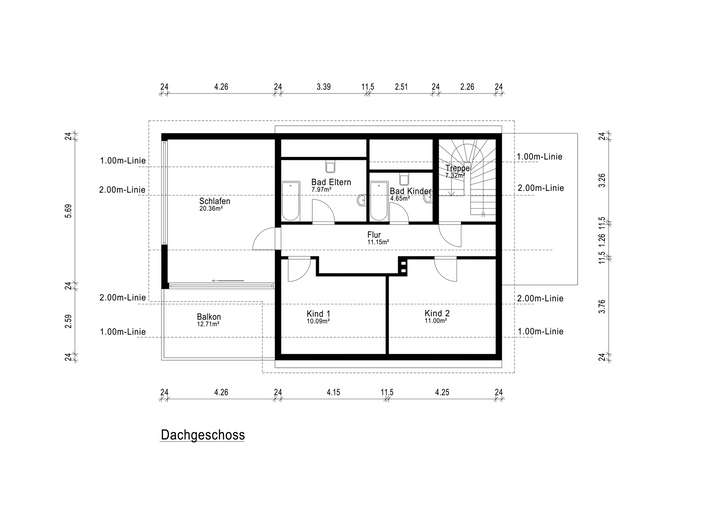 - eine 3-Zimmer-Dachgeschosswohnung.