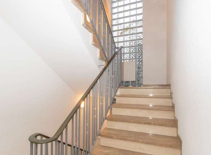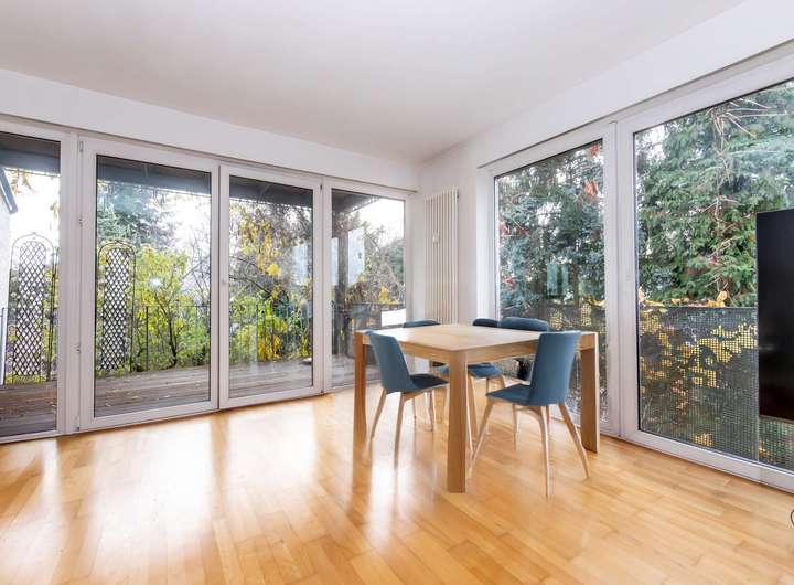 - eine großzügige 5-Zimmer-Maisonettewohnung im Souterrain und Erdgeschoss, der der Garten zugeordnet ist,